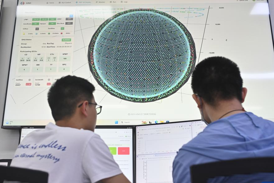 Having completed the filling of its 20,000-tonne liquid scintillator detector, the Jiangmen Underground Neutrino Observatory (JUNO) in south China's Guangdong Province began taking data after more than a decade of preparation and construction.