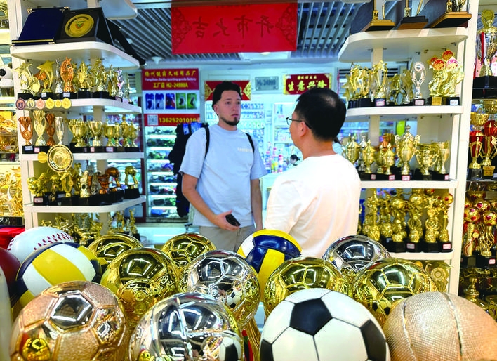 At the Yiwu International Trade Market in the city in east China's Zhejiang Province, stores in its sporting goods section are now packed with international buyers inspecting sample products, negotiating prices and placing orders.
