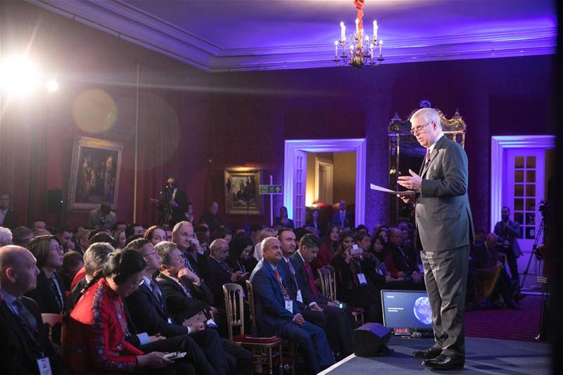 Britain's Prince Andrew addresses the Pitch@Palace global final in London, Britain, Dec. 12, 2018. [Photo/Xinhua]