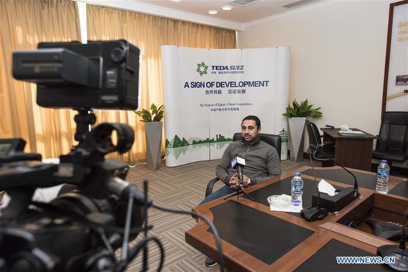 Engineering administrator of the China-Egypt Suez Economic and Trade Cooperation Zone Ahmad Abdel Baqy is interviewed by Xinhua News Agency in the China-Egypt Suez Economic and Trade Cooperation Zone, located some 120 km to the east of Cairo near the Suez Canal, Egypt, Jan. 15, 2019. [Photo/Xinhua]