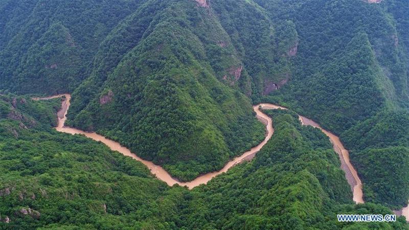 Aerial photo taken on July 19, 2018 shows an ecological conservation area in Jingyuan County of Guyuan City, northwest China's Ningxia Hui Autonomous Region. [Photo/Xinhua]