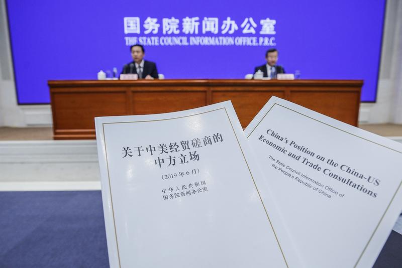 China's State Council Information Office issues a white paper to provide a comprehensive picture of the China-U.S. economic and trade consultations, and present China's policy position on these consultations on June 2, 2019. [Photo/Xinhua]