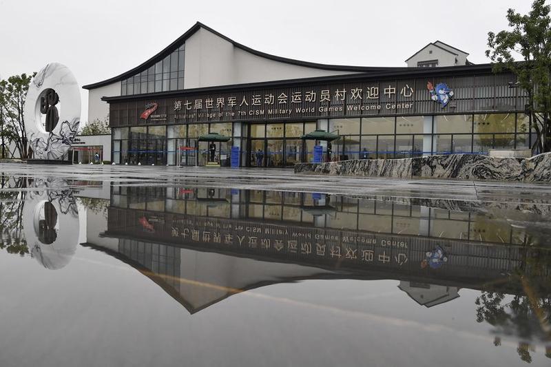Photo taken on Oct. 16, 2019 shows a view of the welcome center at the athletes' village of the 7th CISM Military World Games in Wuhan, capital of central China's Hubei province. [Photo/Xinhua]