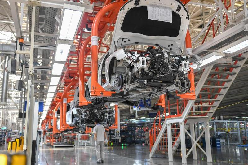 A worker is seen at a factory of the First Automotive Works (FAW) Group Co., Ltd. in Changchun, capital of northeast China's Jilin province, Sept. 1, 2020. [Photo/Xinhua]