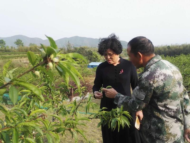 Qiu Yinfang and a farmer examine a plant in Ninghai, Zhejiang province, in April 2018. [Photo provided to China Daily]