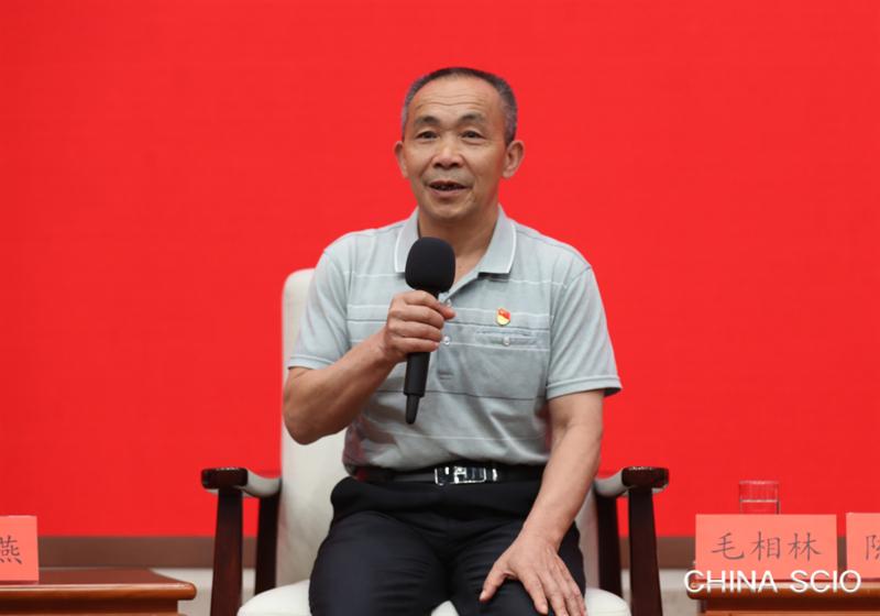 Mao Xianglin, Party secretary of Xiazhuang village in Wushan county, Chongqing municipality, and head of the Xiazhuang village committee, attends a group interview held by the Publicity Department of the Central Committee of the Communist Party of China in Beijing on May 28, 2021. [Photo by Xu Xiang/China SCIO]