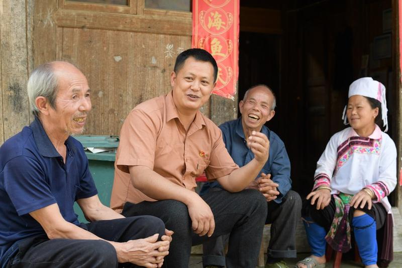Luo Chaobing (2nd L), a Communist Party of China (CPC) member, learns about farmer's preparation for ploughing in Dingdan Village, Rongjiang County, Qiandongnan Miao and Dong Autonomous Prefecture, southwest China's Guizhou Province , April 22, 2021. (Xinhua/Yang Ying)