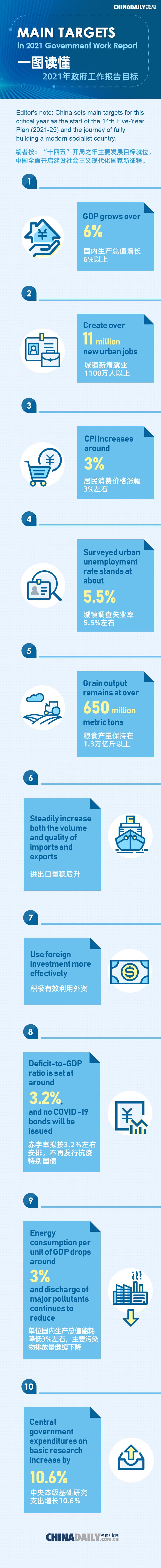 China sets main targets for this critical year as the start of the 14th Five-Year Plan (2021-25) and the journey of fully building a modern socialist country.