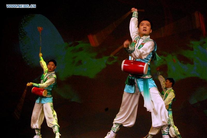 Dancers perform "Long Tassel Drums" during the "Cultures of China, Festival of Spring" gala in Houston, the United States, Feb. 24, 2018. A grand Spring Festival gala was staged in Houston Saturday night for overseas Chinese and Americans to co-celebrate the Chinese Lunar New Year. [Photo/Xinhua]