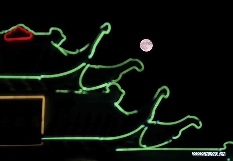 The moon is seen during the Mid-Autumn Festival celebration held at Chinatown in Los Angeles, the United States, Sept. 14, 2019. [Photo/Xinhua]