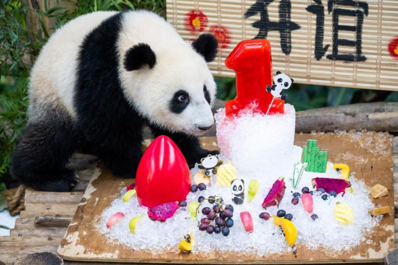 Giant panda cub Sheng Yi celebrates its first birthday at the Giant Panda Conservation Center of Zoo Negara near Kuala Lumpur, Malaysia, May 31, 2022. The 48th anniversary of the establishment of diplomatic relations between China and Malaysia on Tuesday was made more meaningful with the first birthday of the third baby giant panda born in Malaysia. (Xinhua/Zhu Wei)