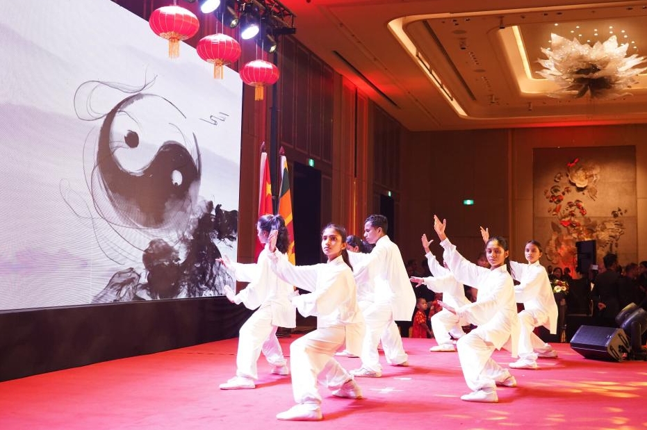 At the reception, guests were presented with a spectacular show of traditional Chinese culture brought jointly by Chinese and Sri Lankan performers, including Taichi and the mysterious face-changing stunt from Sichuan opera.