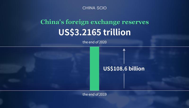 By the end of 2020, China's foreign exchange reserves had totaled US$3.2165 trillion, an increase of US$108.6 billion from the end of 2019.