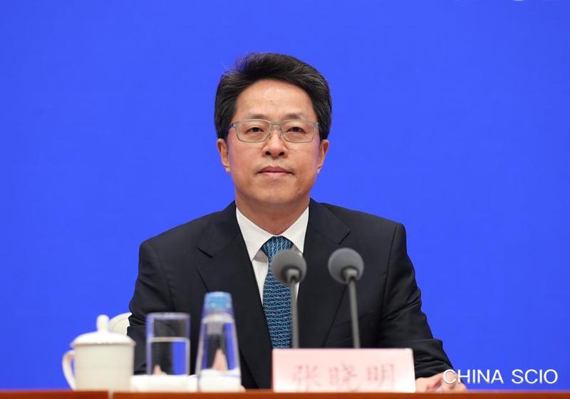 Zhang Xiaoming, deputy director of the Hong Kong and Macao Affairs Office of the State Council, attends the press conference in Beijing on March 12, 2021. [Photo by Xu Xiang/China SCIO]