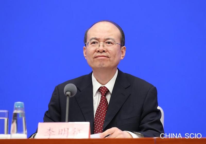 Li Mingzheng, head of the Bureau of Rule of Law Research of the Ministry of Justice, attends a press conference held by the State Council Information Office (SCIO) in Beijing on March 25, 2021. [Photo by Xu Xiang/China SCIO]