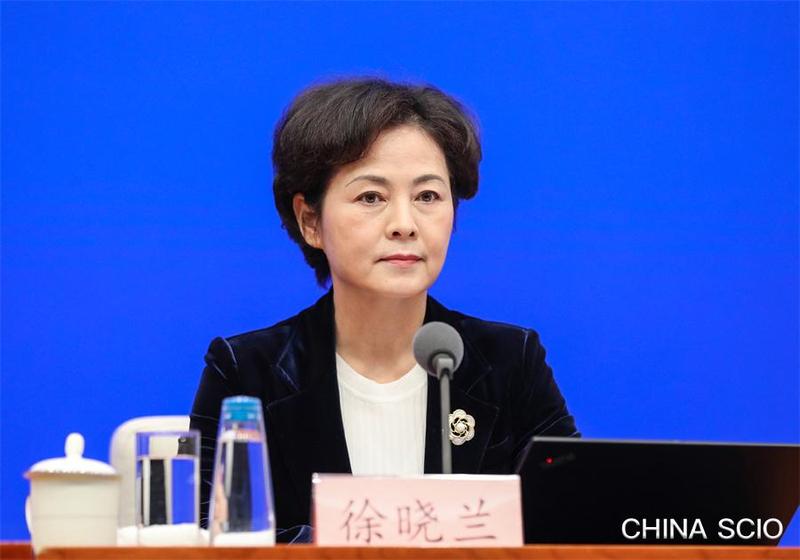 Xu Xiaolan, vice minister of industry and information technology, attends a policy briefing in Beijing on Nov. 23, 2021. [Photo by Xu Xiang/China SCIO]
