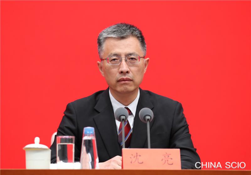 Shen Liang, justice and vice president of the Supreme People's Court, attends a press conference held by the Publicity Department of the Central Committee of the Communist Party of China in Beijing on April 22, 2022. [Photo by Xu Xiang/China SCIO]