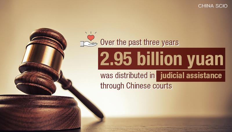 Having established a state judicial assistance system, China distributed 2.95 billion yuan in judicial assistance through its courts over the past three years, the Commission for Political and Legal Affairs of the CPC Central Committee said at a press conference Friday.