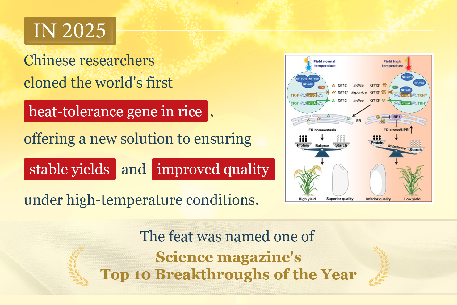 China clones world's first heat-tolerance gene in rice