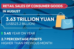 China retail sales up 5.4% in August