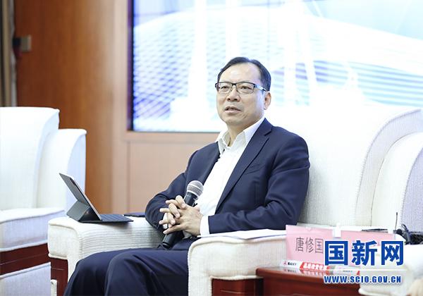 An executive of SANY answers questions at an interview held in Beijing on Oct. 15, 2021. [Photo/China SCIO]