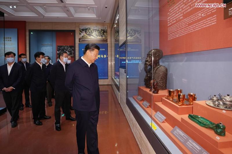 Chinese President Xi Jinping, also general secretary of the Communist Party of China (CPC) Central Committee and chairman of the Central Military Commission, visits an exhibition of diplomatic gifts exchanged between Chinese Party and state leaders and their foreign counterparts, on July 16, 2021. (Xinhua/Li Xueren)