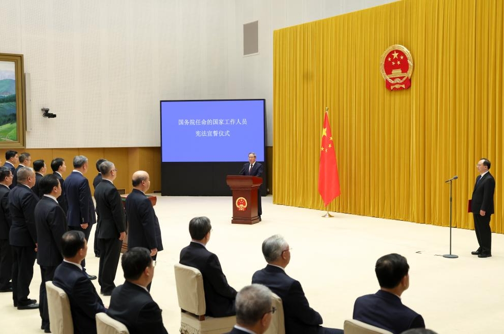 The ceremony was overseen by Premier Li Qiang, who called on the officials to closely follow the Communist Party of China (CPC) Central Committee in thinking, political stance, and action, and implement the decisions and plans made by the CPC Central Committee with a higher standard.