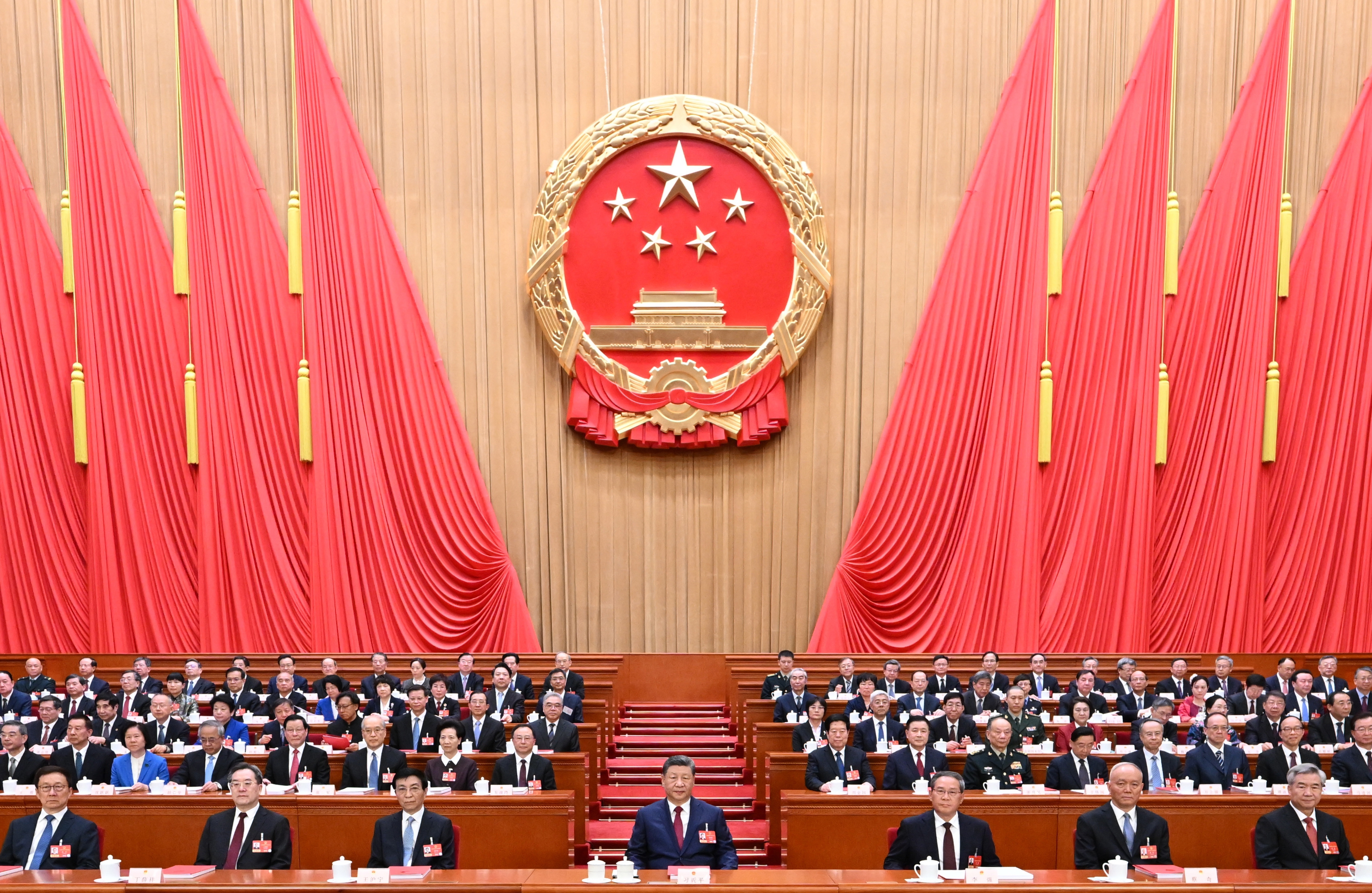 The 14th National People's Congress (NPC) holds the closing meeting of its fourth session at the Great Hall of the People in Beijing, capital of China, March 12, 2026. Chinese President Xi Jinping and other leaders including Li Qiang, Wang Huning, Cai Qi, Ding Xuexiang, Li Xi and Han Zheng attended the meeting. (Xinhua/Xie Huanchi)