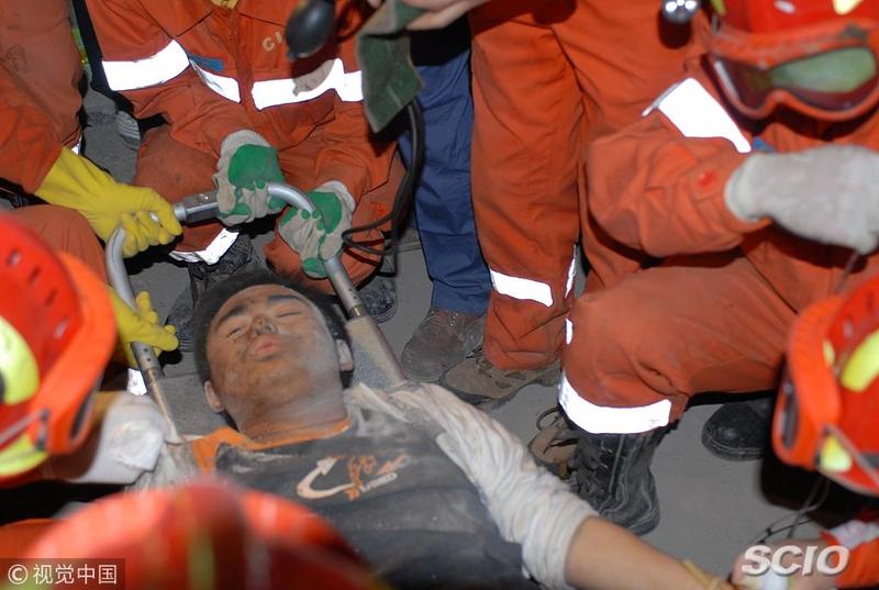 Xue Xiao is carried out of the ruins of Dongqi Middle School in Hanwang township, Mianzhu city, Sichuan province on May 15, 2008, after being trapped for 80 hours. [Photo/VCG]