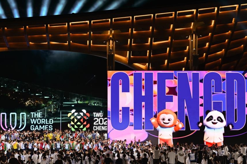 The ancient seal script characters for "Chengdu," inscribed over two millennia ago on bronze ware, came to life in a dazzling display of fireworks at the opening ceremony of the 12th World Games in the capital city of southwest China's Sichuan Province on Thursday evening.