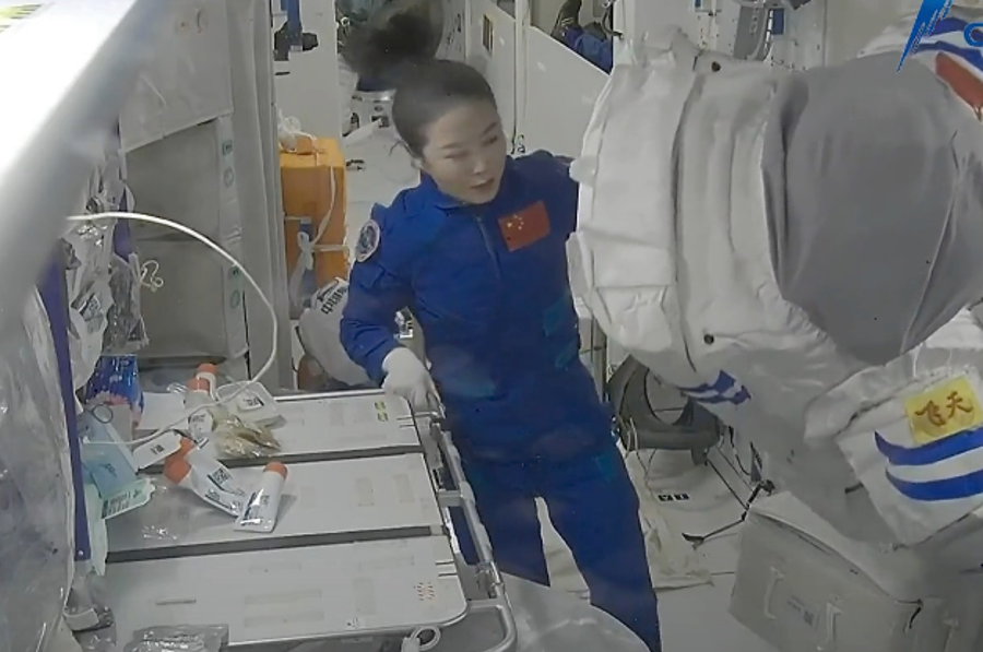 The Shenzhou-13 crew inspected their spacesuits in China's space station recently. China's self-developed spacesuits, named Feitian, help ensure the safety and comfort of taikonauts during extravehicular activities (EVAs). Shenzhou-12 and Shenzhou-13 crew have both used them.