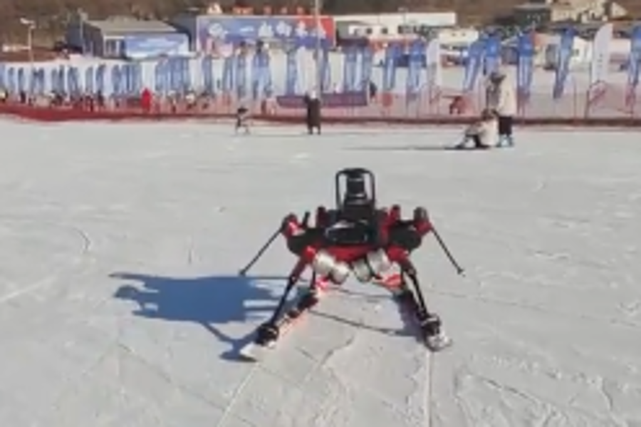 A six-legged skiing robot developed by Chinese researchers has been unveiled on snow slopes in Shenyang, northeast China.