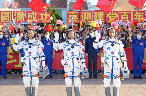 A see-off ceremony for three Chinese astronauts of the Shenzhou-12 manned space mission was held in the morning of Thursday at the Wentiange square of Jiuquan Satellite Launch Center in northwest China.