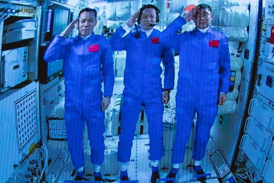 Three Chinese astronauts have sent congratulations from space on the centenary of the Communist Party of China on board the country's space station core module, Tianhe. The three astronauts, Nie Haisheng, Liu Boming and Tang Hongbo, were sent into space aboard the Shenzhou-12 spaceship on June 17.