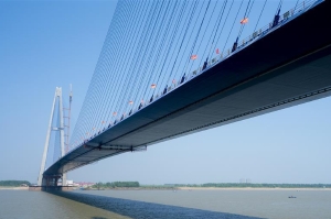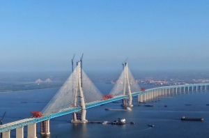 The Yangtze River, the world's third longest waterway, is expecting a new landmark as construction counts down toward completion of the widest bridge on the river.