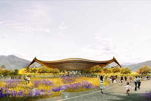 Aerial view of Beijing horticultural expo site, at the foot of the Great Wall in Beijing.