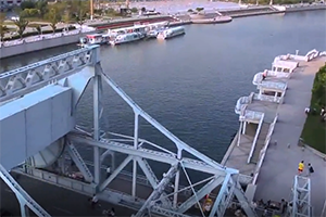Workers start to lay tracks on the Russian section of the 1st China-Russia cross-border railway bridge.