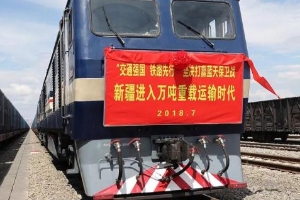 A train carrying 3,700 tones of coal headed for neighboring Gansu Province. It's the maiden trip on a new railway that ships out Xinjiang's coal.