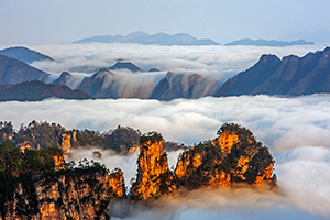 Enjoy the heavenly beauty of the snow-capped mountains of Zhangjiajie, central China's Hunan province, where its sea of clouds and crystal rime and silver thaw are rare to see.