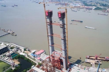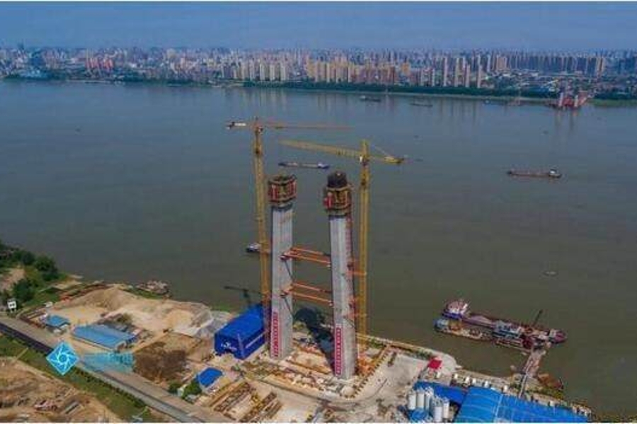 A gigantic bridge is being built over the Yangtze River.