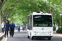 A driverless electronic van is being tested on the campus roads at Shanghai Jiao Tong University.