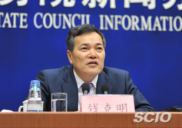 Qian Keming, vice minister of commerce, speaks on July 10 at a press conference held by the State Council Information Office. [Photo/China SCIO] |