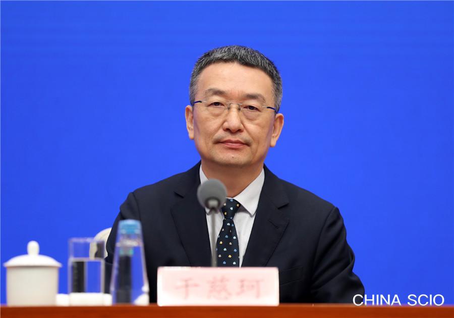 Yu Cike, director of the Copyright Administration under the Publicity Department of the Central Committee of the Communist Party of China, speaks at a press conference in Beijing on April 25, 2021. [Photo by Xu Xiang/China SCIO]