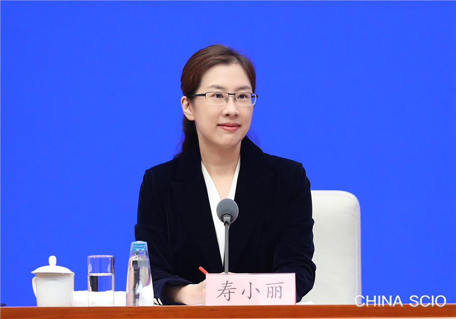 Shou Xiaoli, deputy director general of the Press Bureau of the State Council Information Office (SCIO) and spokesperson of the SCIO, presides over a press conference in Beijing on Sept. 14, 2021. [Photo by Liu Jian/China SCIO]