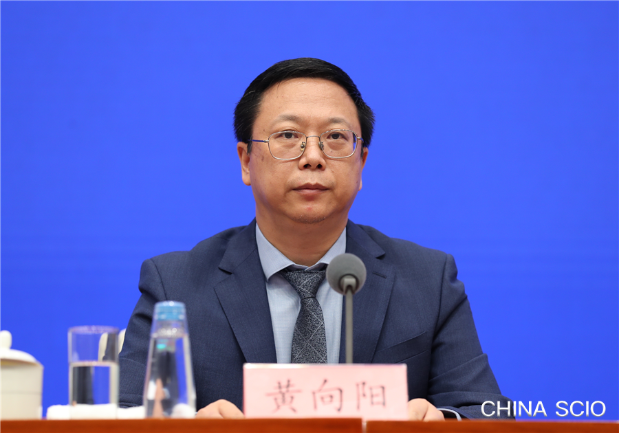 Huang Xiangyang, director of the Working Group Office for the Establishment of the National Sci-Tech Innovation Center, the Chinese Academy of Sciences, attends a press conference in Beijing on Sept. 15, 2021. [Photo by Xu Xiang/China SCIO]