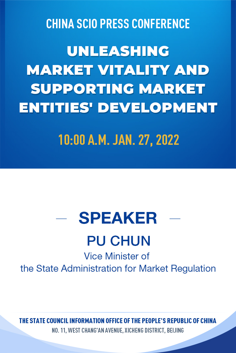 The State Council Information Office (SCIO) will hold a press conference at 10 a.m. Thursday on unleashing market vitality and supporting market entities' development.
