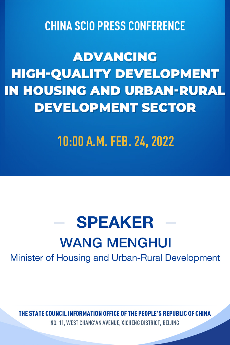 The State Council Information Office (SCIO) will hold a press conference at 10 a.m. Thursday on advancing high-quality development in the housing and urban-rural development sector.