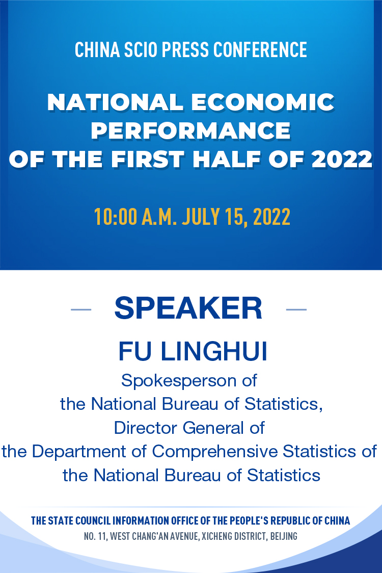 The State Council Information Office (SCIO) will hold a press conference at 10 a.m. Friday on the country's economic performance in the first half of 2022.