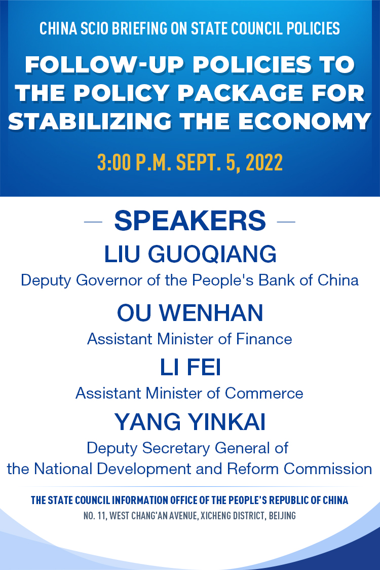 The State Council Information Office will hold a policy briefing at 3 p.m. Monday on China's follow-up policies for stabilizing the economy.