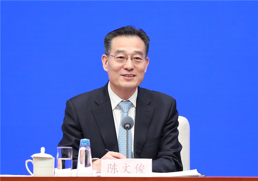Chen Wenjun, director general of the Press Bureau of the State Council Information Office (SCIO) and spokesperson of the SCIO, chairs a press briefing in Beijing on March 5, 2024. [Photo by Luan Haijun/China SCIO]
